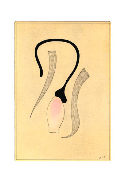 "Черный стебель", 1997 15х21 см мелованная бумага, масло.