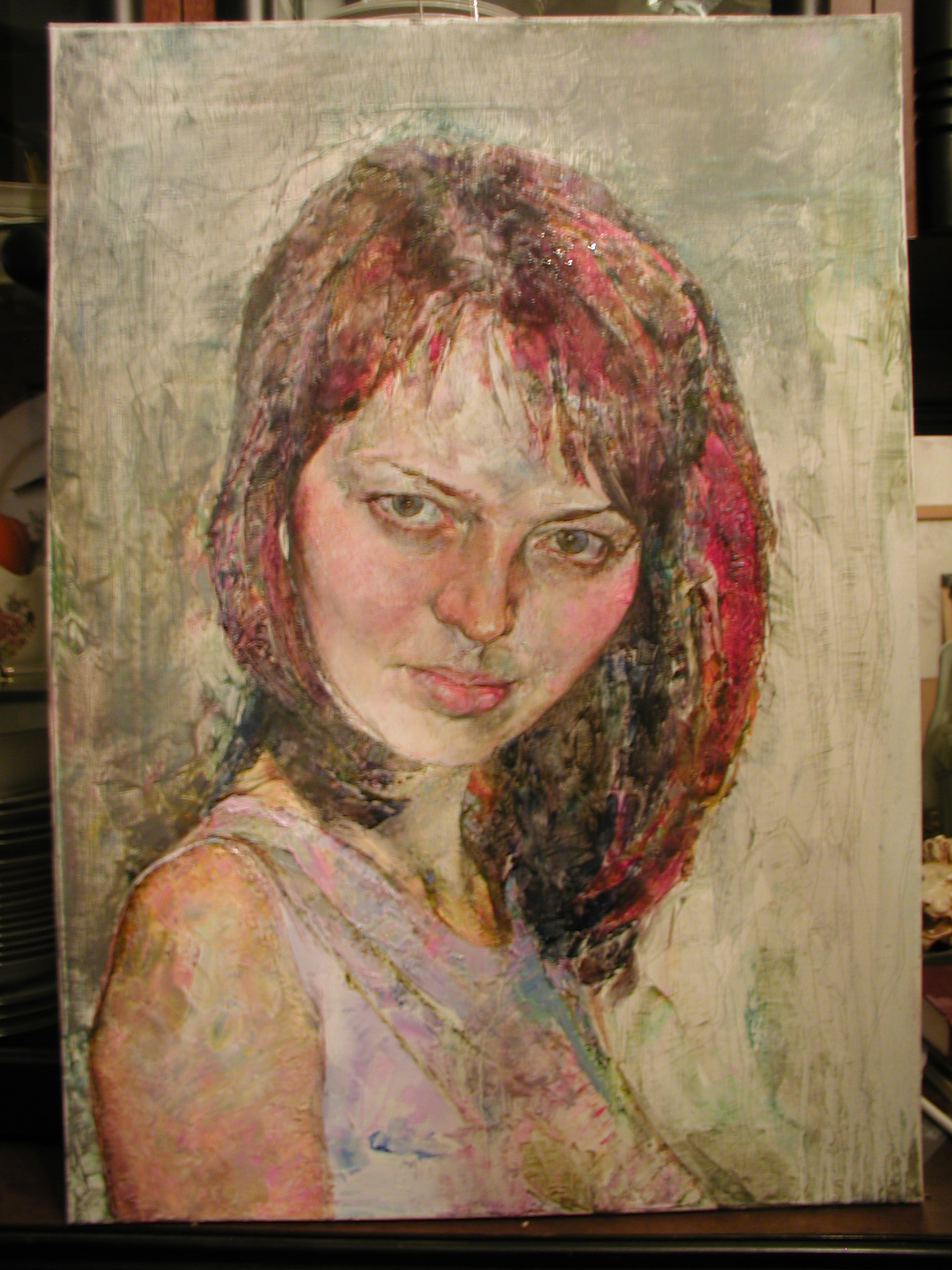 Между прочим "Вампирша", - кстати, название Автору дарю, удалась, - пожалуй, единственной из прочих представленных работ: http://www.pereplet.ru/galery/sheyko1/nicole.jpg в любом случае, остальные смотреть можно, - честно, с интересом пытаешься найти чего-то созвучного, и ... никак; по-моему, Автору в его вернисаже катастрофически, - фатально, не хватает драматургии, - ну, хоть капельку сюжета добавить бы, и сразу же, - вот оно, родится "впечатление"; и здесь досадно оттого, что - руке Автора, - резкой гамме на полотне, - рубленой фактуре веришь; веришь, несмотря на практически прямые цитаты из отстойной педрилы серба Андрюши Вархолы (Энди Уорхола), - ну, как тут не вспомнить, глядя на "Вампиршу", алых губ на рисунке Мерилин Монро? http://photofile.ru/users/zenzinich/3301408/116270734/ Это не страшно, - в конце концов, с чего-то нужно начинать, и Автор так или иначе выродится из-, - обязательно, талант несомненный; к слову, - разве Анри Матисс не начался с- и не вылупился позднее из Поля Сезанна в чудесных "Рыбках"; * * * признаюсь, - как зрителя отчего-то свербит желанием увидеть всего того же самого в акварели, - грезится, что результат растечётся замечательным; а чего побаиваться; и последнее, - в "Вампирще" схвачено сочетание конкретных тонов "алого" в "синем"; ну, и славно, - почему бы на эту удачную находку не "взгромоздиться верхом" и не гнать её дажее без остановки до бешенной пены в шенкелях, пока она сама не издохнет под новыми идеями; по-моему, должно сработать. * * * с наилучшими пожеланиями в Творчестве ... ... погнал кончать "Портрет жены", а то Антонова совсем озверела, - коза старая.
