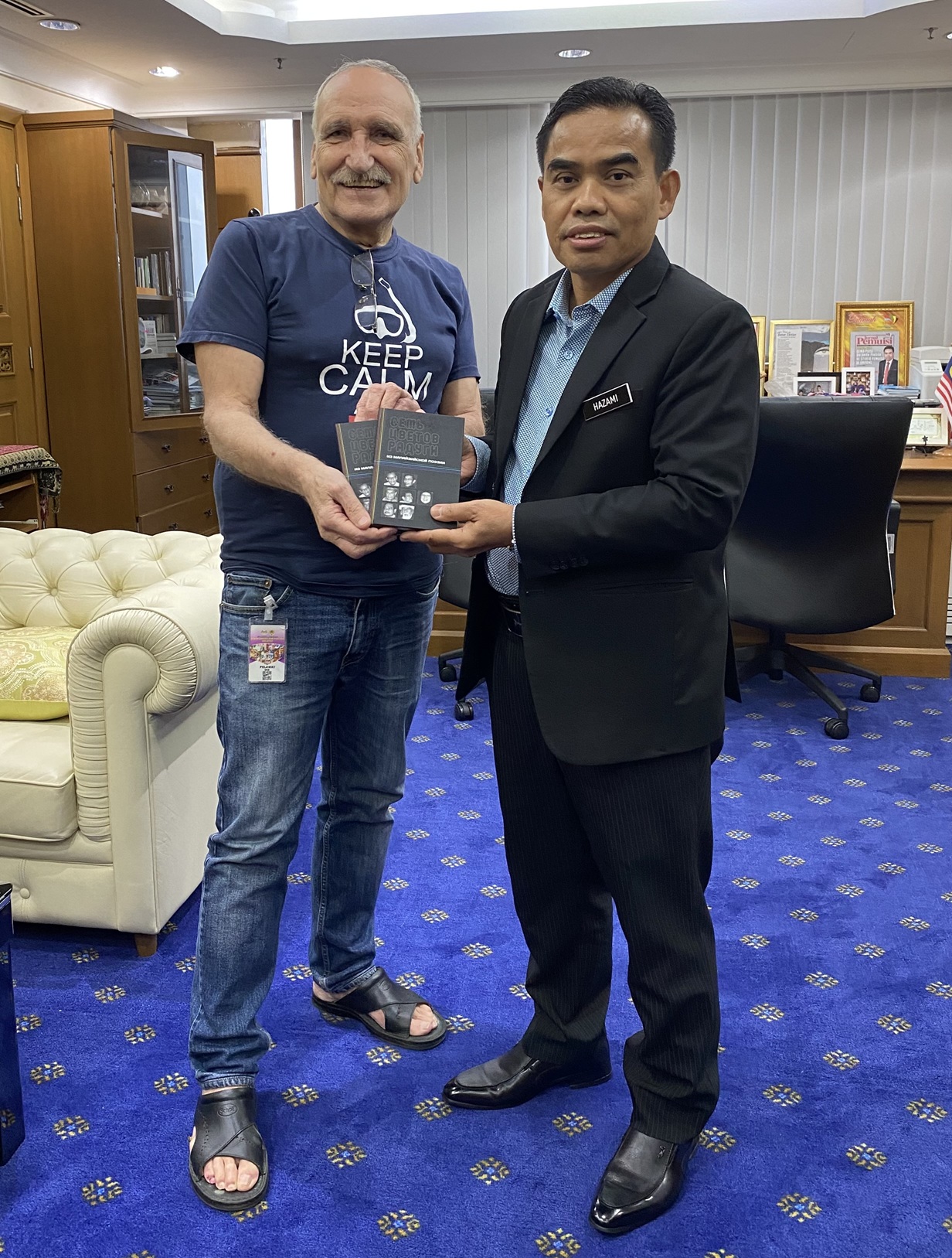 Наш автор доцент кафедры восточных языков Дипломатической академии МИД России В.А. Погадаев, находясь в Куала-Лумпуре, встретился 19 января с Генеральным директором Совета по языку и литературе Малайзии Хазами Джахари и передал ему сборник стихов малайзийских поэтов «Семь цветов радуги», переведенных им с малайского на русский совместно с дочерью А. В. Погадаевой и изданных в 2025 г. московским издательством «Ключ-С» при поддержке научно-аналитического портала «Восточная трибуна». Хазами Джахари высоко оценил издание книги и предложил переиздать ее в Малайзии с добавлением оригинальных текстов на малайском языке.