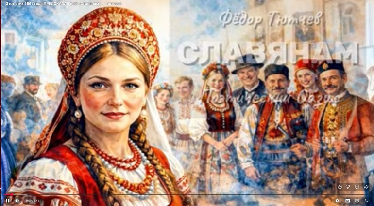 "Стихотворение «Славянам» было написано в мае 1867 года. Оно посвящено историческому событию — Славянскому съезду (Этнографической выставке), проходившему в Москве и Санкт-Петербурге. Тютчев обращался к делегатам из разных славянских стран, многие из которых в то время находились под гнетом иноязычных империй. В этих пророческих строках звучит призыв к духовному единству, братству и сохранению общей славянской идентичности перед лицом исторических испытаний."