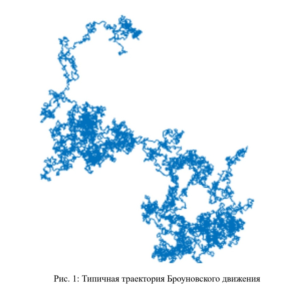Я не буду рассматривать физическую природу Броуновского движения (хотя это крайне интересно), но скорее его математическое описание. Математическая модель Броуновского движения была создана Норбертом Винером. Смысл этой модели был такой: давайте мы будем следить в микроскоп за маленькой частичкой, и фиксировать ее положение, например, каждую секунду, отмечая, насколько она продвинулась. И вот, первое свойство которое было тщательно проверенно разными людьми, таково: во-первых, это перемещение за одну секунду случайно, оно может происходить в любом направлении, на разные расстояния, но самое главное, что перемещение за следующую секунду совершенно независимо от перемещения за предыдущую секунду. То есть, как говорят специалисты по вероятности, это процесс с независимыми приращениями. Как правило, если взять движение частицы за много секунд, то она в какие-то секунды передвигается, скажем, слева направо, в какие-то другие секунды справа налево, и поскольку все эти перемещения происходят случайно и независимо друг от друга, то частица примерно столько же раз переместится в одну сторону, сколько и в противоположную. Поэтому, в среднем, частичка весьма мало двигается, она толчется на месте, и в результате она за n секунд может переместиться, как правило, на расстояние порядка √n. Таким образом, чем больше n, тем меньше эффективная скорость ее движения. У нее нет никакого среднего движения, и если нарисовать траекторию этой частицы (что тоже делалось миллионы раз), то это будет какая-то крайне запутанная траектория, даже не кривая,