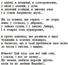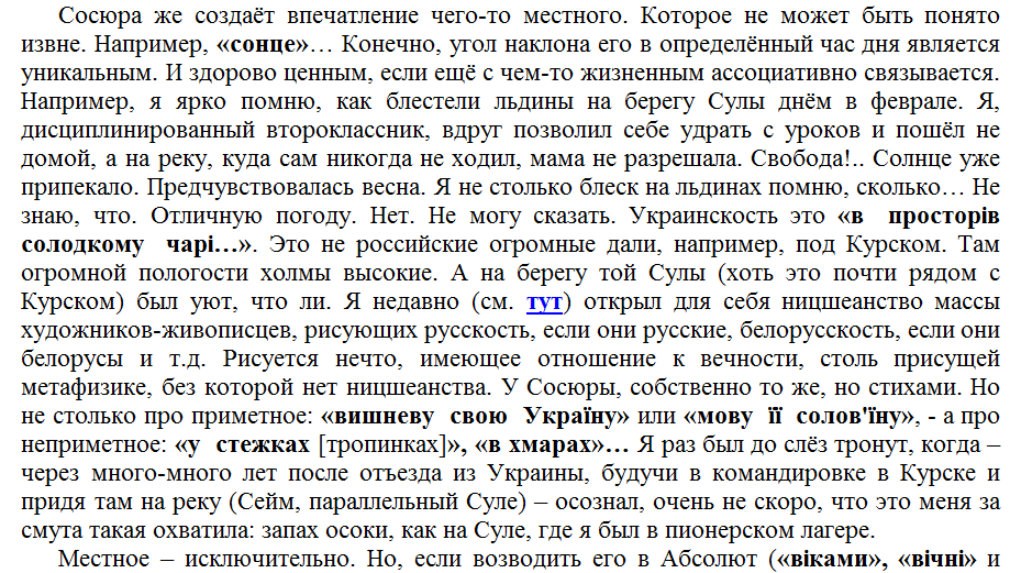 ⌠Так, в 1951 году на апогее ⌠закручивания гаек■ в национализме было, к примеру, обвинено стихотворение В. Сосюры с названием ⌠ЛюбЁть Укра©ну!■■ (http://rusplt.ru/ww1/history/nazionalizm-11498.html), - то я не согласен, что нет национализма тут.