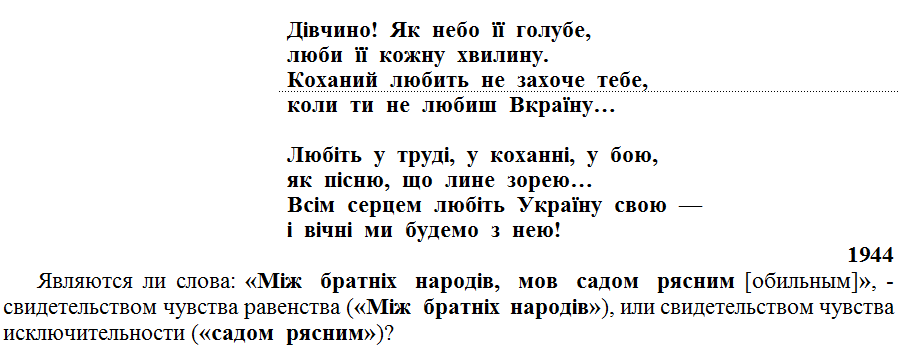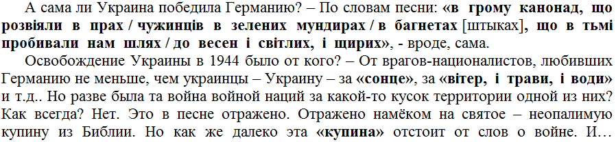 вообще всё-всё, как то следует из стихотворения) под датой создания 1944┘ и безотносительно к русским, главным освободителям от фашизма┘ и при начале партизанской войны ОУН┘ то это, конечно, украинский национализм.