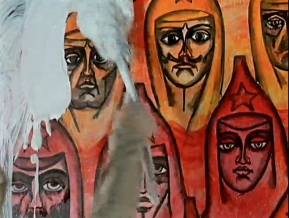 "…им нужно было создать метафизический поток, такова была задача на каждом представлении, а что это такое, пробовал понять Даня, объяснения были смутные, это поток вашего самосознания, но не того, которое у вас вот здесь, постучала пальчиком по голове Медея, а того, которое у вас вот здесь, она мягко провела рукой по груди и по животу, она, скорее всего, была тут не только артисткой, но и режиссёром, хотя режиссёров их система не допускала, диктат в революционном искусстве был непозволителен… Понимаете, говорила Медея, плавно покачивая носком облезлой туфли, это то, что встаёт за словами, то есть вот слова, а есть ещё смыслы, и смыслы должны возникнуть у вас в голове, в некоем потоке, который сам собой управляет, ну вот как кавалеристы скачут в атаку, лошади же не спрашивают, как им скакать, так и мы…”. Ну как можно быть постмодернистом при такой пронзительности? Должна ж вдохновлять какая-то страстная идея, пусть и мало внятная самому художнику. А постмодернисту всё ясно: он не считает ничего достойным быть идеалом. Это опять глава про 1920-й год, когда ещё было чем вдохновляться. И воссоздаётся этот "метафизический поток” даже пунктуацией (из знаков препинания оставлены почти только запятые). Впрочем, такая пунктуация применяется у Минаева на каждом шагу. Он, словно Зюганов в последней (2017 года) книге, говорит, что есть на планете пассионарные народы (россияне, в частности), и он, Минаев, счастлив, мол, что россияне год за годом откалывают чудеса, что б это ни было. Ну точно по урезанной цитате из Феофана Затворника: “Дело не главное в жизни. Главное – настроение сердца”. А мало ли, что сердце захочет в следующий момент… И можно Минаеву так беззаветно отдаваться каждому выбрыку? Художники А. Спешнева и Н. Серебрякова в картинах, что в фильме, - объясним это инерцией левого шестидесятничества в 1969-м году – могли ещё так вжиться в ситуацию "На той единственной, гражданской”, когда “комиссары в пыльных шлемах…”, что картины эти потрясают… Но что видит сквозь свой магический кристалл Минаев в 2015-м, чем он так упоён? – Неужели, как Карен Шахназаров, предположивший на днях, что грядёт поворот планеты опять к социализму. К настоящему. (А настоящим я считаю тот, который обеспечивает нарастание самодеятельности каждый день.) Но как тогда объяснить такую иронию Минаева к своему карасю-идеалисту, анархисту Почечкину "(ударение на первом слоге)”? Больше никого из своих персонажей он так не подкалывал (он это "ударение” повторил раз, наверно, десять).